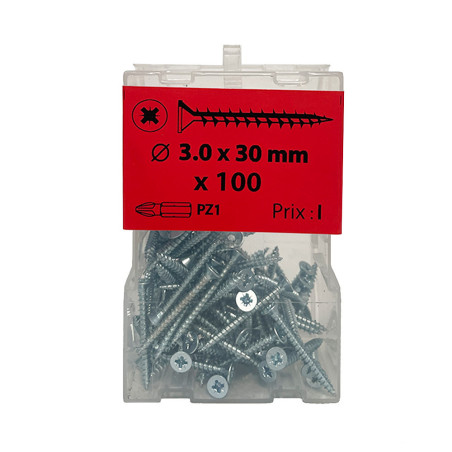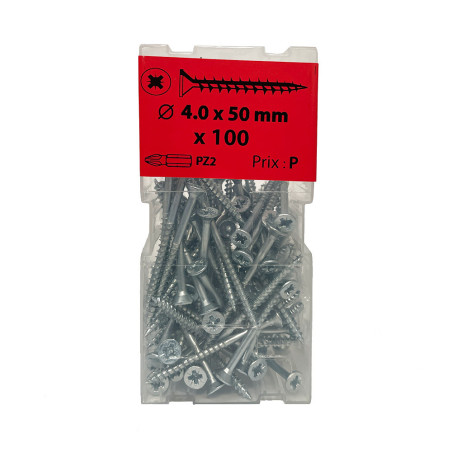 L'empreinte pozidriv de ses vis agglo, offre une plus grande surface de contact entre l'embout et l'empreinte de la vis et par conséquent un vissage plus facile et pérenne de la vis. Sur ToutBrico.com, retrouvez de nombreuses références de vis en stock et à petit prix.