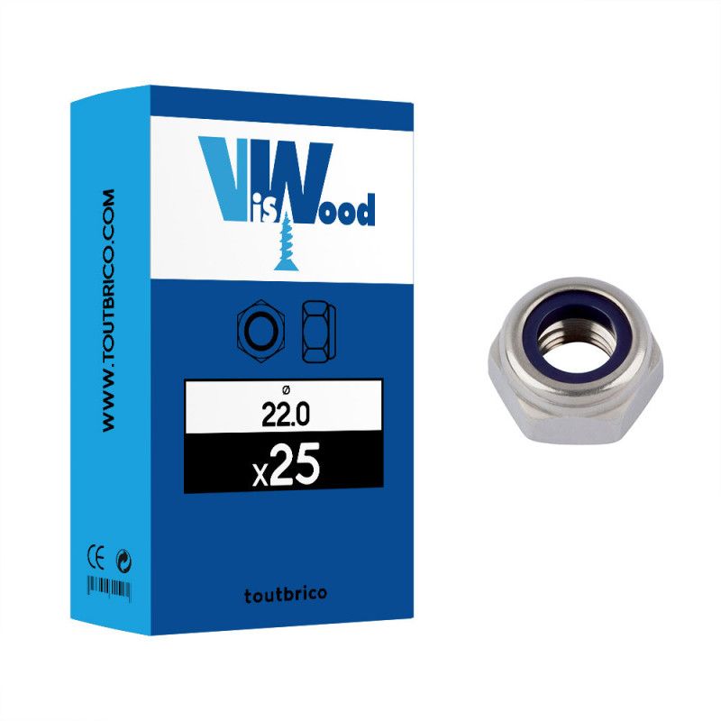 Ces 25 écrous freins diamètre 22mm en acier zingué disposent d'un dispositif de freinage sous forme de bague de nylon située à l'extrémité. Ils empêchent le desserrage pour une fixation longue durée.