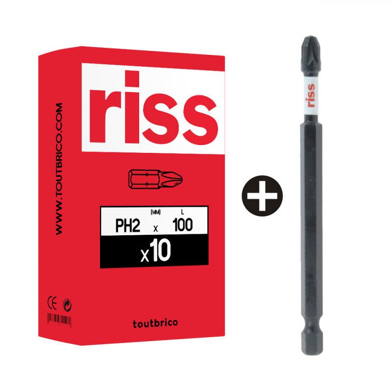 Boîte de 10 embouts 100mm PH2 cruciforme Phillips Riss : robustesse et précision pour un vissage extrême