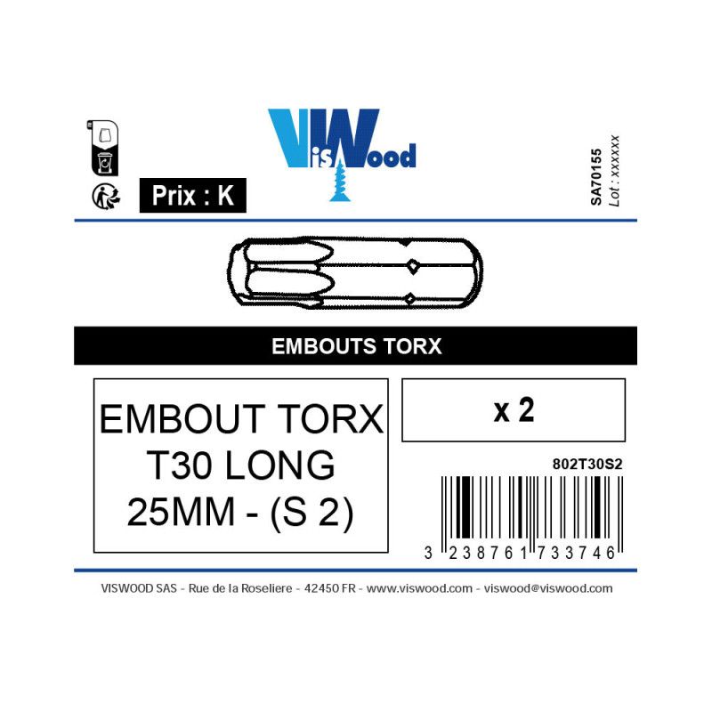 La boite de 2 embouts Torx n°30 en acier de la marque Viswood, vous permettra de visser facilement et rapidement tous vos supports. Les embouts sont faciles à fixer sur votre visseuse et vous offre une rapidité d'exécution.