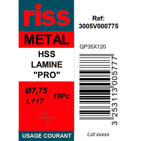 Réalisez vos perçages dans de l'acier facilement avec cette boite de 10 forets à métaux HSS laminé Pro Ø7,75mm Riss. Spécialement conçus pour un usage courant, ces forets acier Riss seront parfaits pour percer de l'acier non allié ou de l'acier faiblement allié.