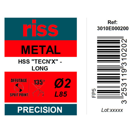 Percez vos éléments en acier avec ce foret à métaux HSS série longue Ø2 x 85mm de la marque Riss. Avec ce foret métaux Riss vous obtiendrez un perçage de haute précision. Son affûtage en croix évite de déraper au moment du perçage et demande moins d'efforts sur la perceuse.