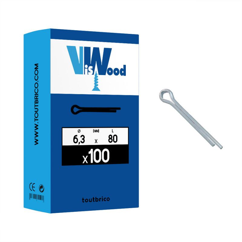 La Boite 100 goupilles fendues 6.3 x 80mm acier zingué blanc - Viswood est idéale pour vos travaux de fixation et d'assemblage. Fabriquées en acier zingué blanc, elles offrent une excellente résistance à la corrosion et sont parfaites pour maintenir fermement vos éléments en place. Pratiques et fiables, elles conviennent parfaitement aux projets de bricolage.