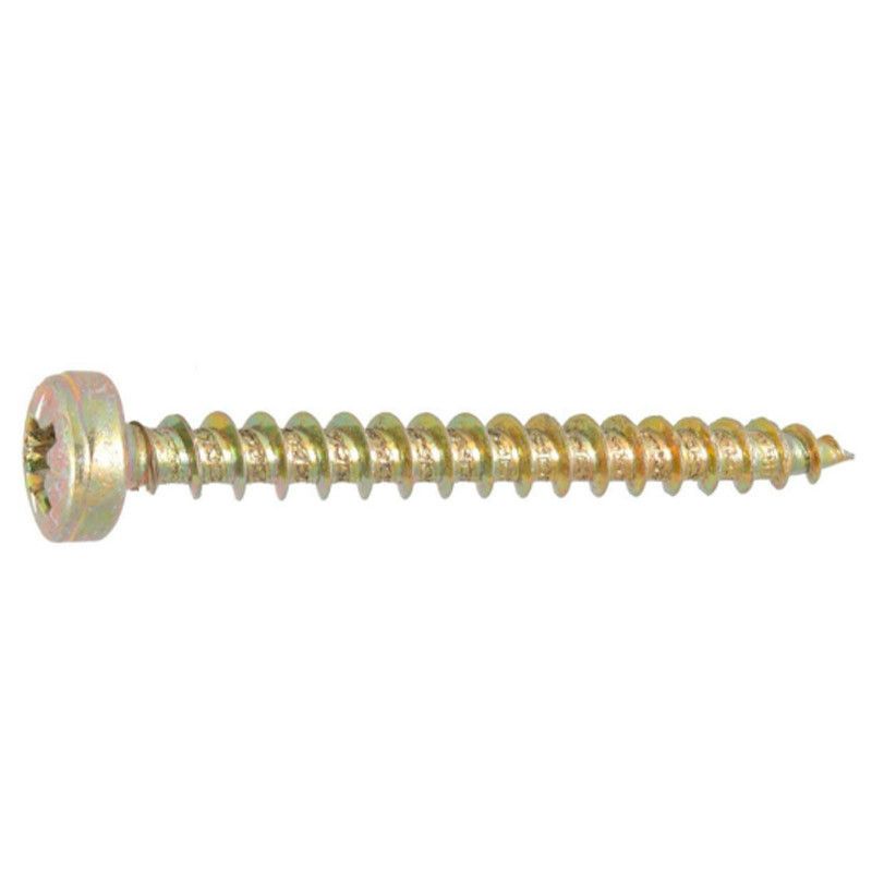 Conçue pour une fixation rapide et fiable, cette Vis agglo 4 x 35mm tête cylindrique pozidriv acier zingué bichromaté à l'unité - Viswood résiste à la corrosion. Parfaite pour les travaux sur panneaux agglomérés ou contreplaqués.