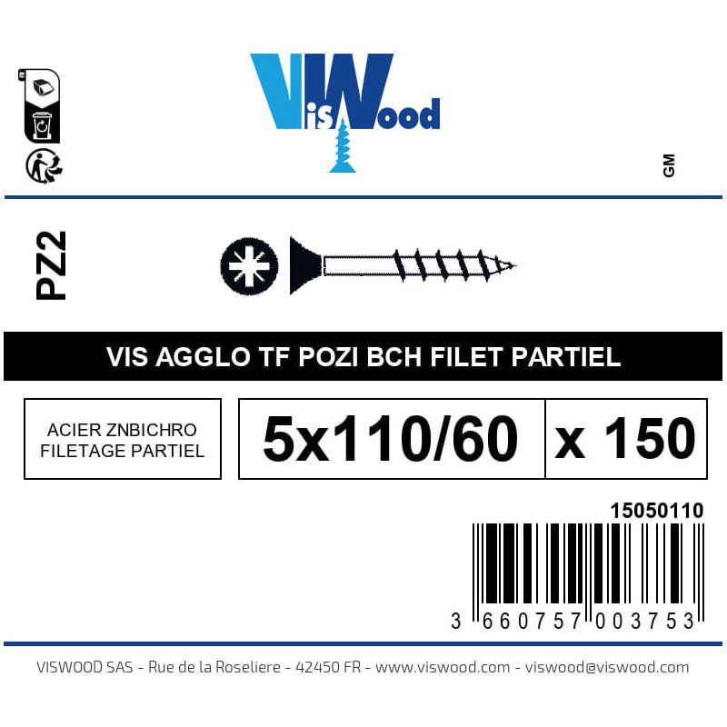 La Boite 150 vis agglo 5 x 110/60mm tête Fraisée Pozidriv Acier zingué bichromaté - Viswood est idéale pour vos travaux de fixation sur bois et aggloméré. Avec leur tête fraisée et leur finition en acier zingué bichromaté, ces vis assurent une résistance élevée à la corrosion tout en offrant une fixation solide. Leur empreinte Pozidriv garantit un vissage précis et sécurisé, parfait pour les professionnels comme pour les bricoleurs.