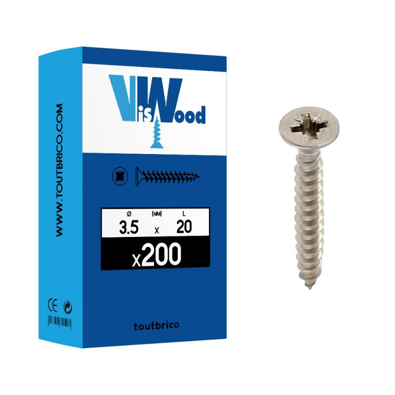 La Boite 200 vis agglo 3.5 x 20mm tête Fraisée Pozidriv Inox A2 - Viswood est conçue pour garantir une fixation robuste et durable sur bois et aggloméré. Fabriquées en inox A2, elles offrent une excellente résistance à la corrosion, idéales pour une utilisation en extérieur. Leur tête fraisée et empreinte Pozidriv assurent un vissage précis et sécurisé, parfait pour les professionnels et les bricoleurs.