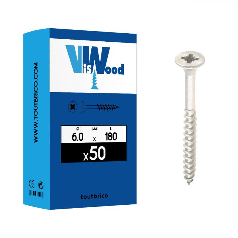 La Boite 50 vis agglo 6 x 180/70mm tête Fraisée Pozidriv Inox A2 - Viswood est conçue pour garantir une fixation robuste et durable sur bois et aggloméré. Fabriquées en inox A2, elles offrent une excellente résistance à la corrosion, idéales pour une utilisation en extérieur. Leur tête fraisée et empreinte Pozidriv assurent un vissage précis et sécurisé, parfait pour les professionnels et les bricoleurs.