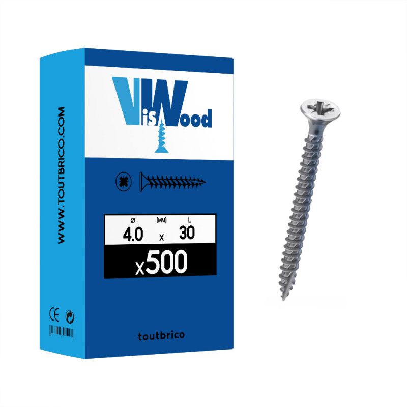 Dotées d'une empreinte Pozidriv, ces 500 vis agglo anti fendage 4 X 30mm tête fraisée à filetage complet en acier zingué sont idéales pour le vissage dans des panneaux de particules ou du contreplaqué.