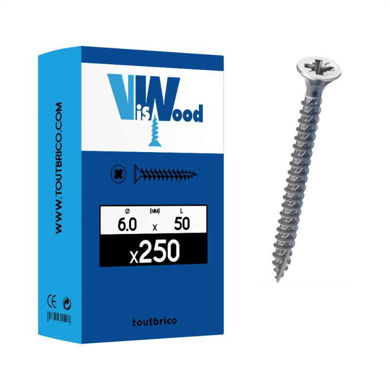 Dotées d'une empreinte Pozidriv, ces 250 vis agglo anti fendage 6 X 50mm tête fraisée à filetage complet en acier zingué sont idéales pour le vissage dans des panneaux de particules ou du contreplaqué.