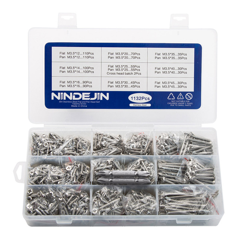 Pour vos travaux de vissage, de perçage et de fixation dans du bois, les équipes de Tout Brico ont sélectionné ce coffret de 1132 vis à bois tête fraisée diamètre 3,5mm tête fraisée et tête bombée. Plusieurs longueurs de vis à bois sont disponibles dans ce coffret ainsi que 2 embouts de vissage< /strong>.