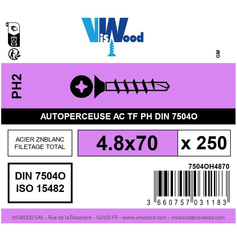 Optez pour la de la marque française Viswood. idéales pour des fixations rapides et résistantes en milieux humides. Parfaites pour le métal. elles assurent un vissage sans pré-perçage. Disponible sur Tout Brico !