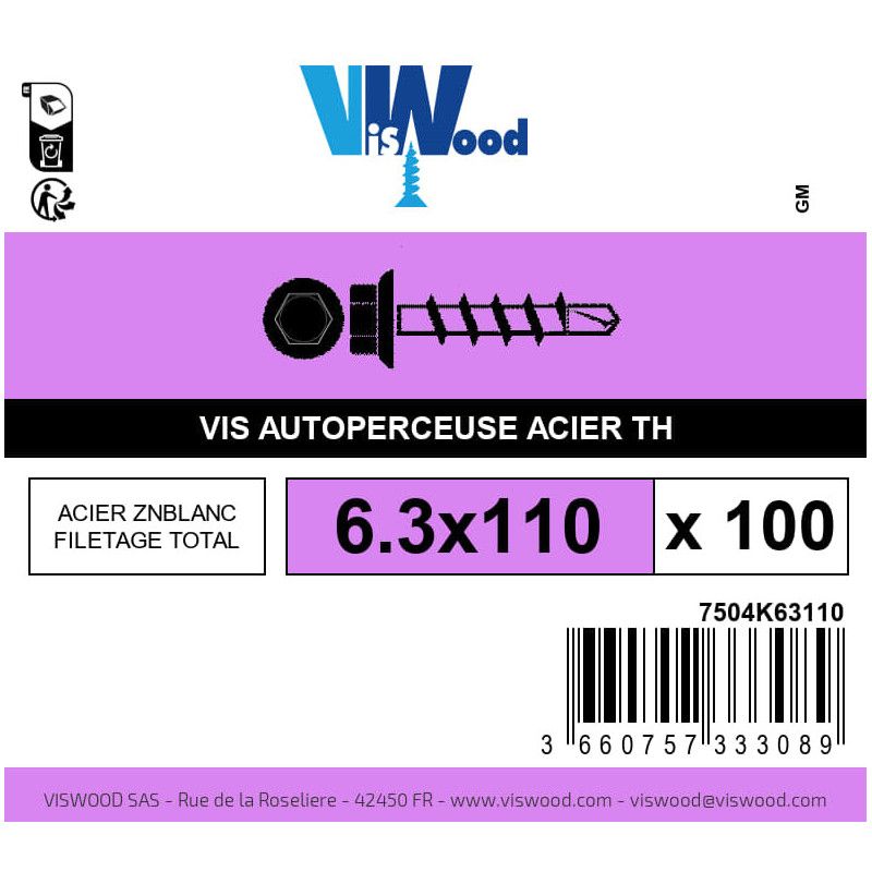 Optez pour la Boite 100 vis autoperceuses 6.3 x 110mm tête hexagonale avec embase acier zingué - Viswood de la marque française Viswood pour des fixations rapides et solides. Grâce à leur capacité autoperceuse, ces vis permettent un montage facile sans besoin de pré-perçage. Fabriquées en acier zingué, elles offrent une excellente résistance à la corrosion, parfaites pour vos projets de bricolage ou de construction.